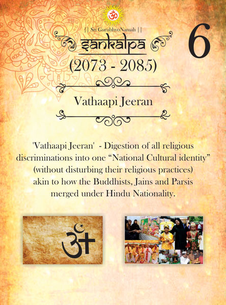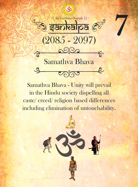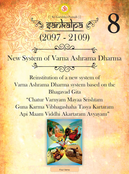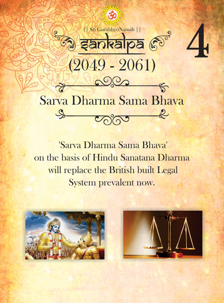 Guruji envisions in this system, a minimum of four hours of sathva every day through vedantha shravanam, Ishwara Aradhya and other dharmic practices. The vedant shravanam is practised by listening to classes which are organised in to 18 levels.